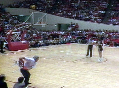 902 wins. 3 national titles. One of the cleanest programs in college hoops. Bobby Knight’s temper and boorishness, however, were legendary. Here, in a 1985 game against Purdue, Knight throws a chair onto the court to protest a call.